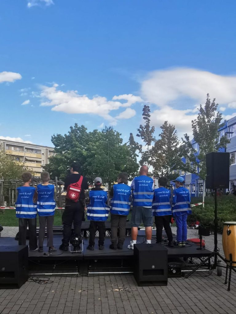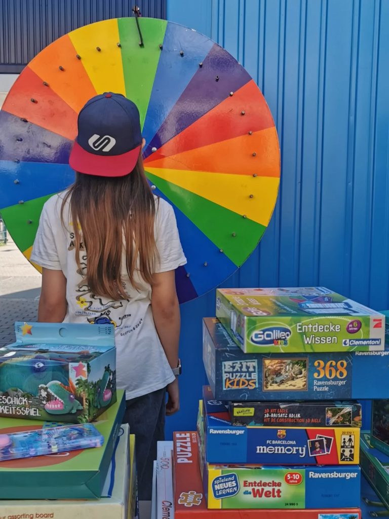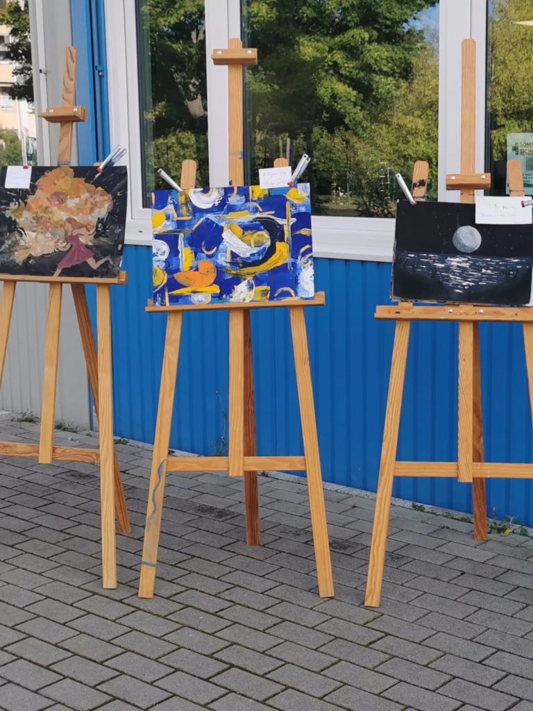 Sommerhüte basteln, Mitmachzirkus und Glücksrad waren neben Eiswagen, Würstchengrill und Kuchenstand beliebte Stationen. Auf der Bühne zeigten Schülerinnen und Schüler bei Solo- und Bandauftritten ihr musikalisches Talent, entlang der gesamten Containerfensterwand ihre künstlerischen Arbeiten.