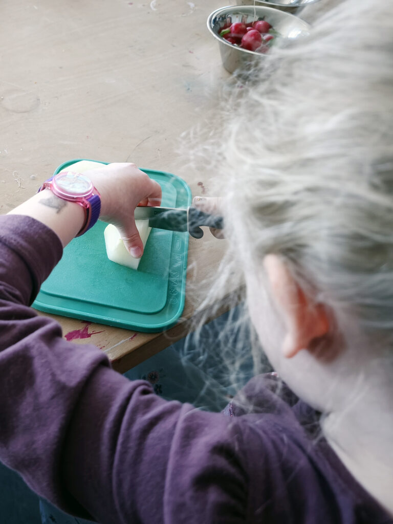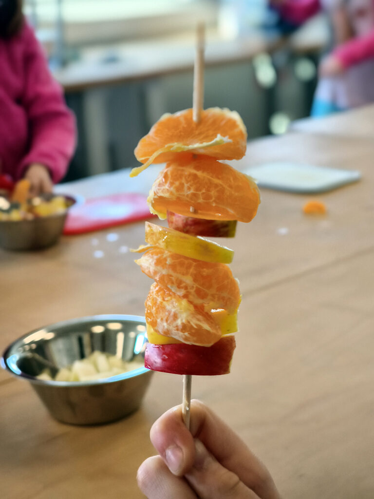 Zum Abschluss entdecken sie mit allen Sinnen, wie vielfältig und lecker Obst und Gemüse sein kann – und warum es fester Bestandteil einer ausgewogenen Ernährung sein sollte. Auf dem Schulhof rätselten die Kinder, erledigten Aufträge und unterstützten sich gegenseitig bei der Beantwortung der Fragen. Im Anschluss wurde fleißig Obst und Gemüse geschält, geschnitten und anschließend gemeinsam verzehrt.